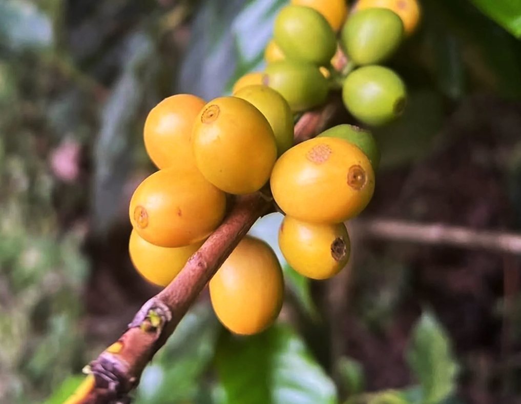 Caturra is a natural mutation of the Bourbon variety, discovered between 1915 and 1918 on a plantation in Minas Gerais, Brazil. Its compact growth, caused by a single gene, earned it the name “Caturra,” derived from the Guarani word for “small,” or “Nanico.”